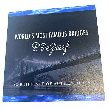 САМЫЙ ИЗВЕСТНЫЙ МОСТ МИРА - ПОНТ-ДЕ-БРУКЛИН С момента своего создания в 1890 году Atelier P. De Greef является одним из самых востребованных в Европе магазинов высококачественных медалей и наград. Престижное звание «Запатентованный поставщик двора Бельгии» свидетельствует о необычайном мастерстве его ударов. Своими горельефами с неповторимой отделкой, изготавливаемыми небольшими сериями и в основном вручную, П. Де Гриф восхищает и мир коллекционеров. Для этого издания Atelier P. De Greef смог пригласить еще одного художника высокого уровня. Это Хоакин Хименес, главный гравер Monnaie de Paris, чьи рисунки украшают многие французские и международные монеты евро. Знаменитый медалист впервые разработал для П. Де Грефа горельеф, дизайн которого столь же требователен, сколь и эффектен. Серебряная монета весом 5 унций посвящена Бруклинскому мосту (Brooklyn Bridge). Он представляет собой внушительную работу, подчеркнутую применением чистого золота. Ист-Ривер, через которую он проходит, ярко сияет эмалью, а очертания изделия прерываются замысловатым тиснением, повторяющим всемирно известный горизонт Нью-Йорка. Связь между горельефом и комурной печатью требует передовых ноу-хау. Более 75% многих этипесальных работ не должны выполняться вручную. Это произведение является одним из самых ярких произведений Хоакина Хименеса, как и мастера-медалисты П. Де Гриле.