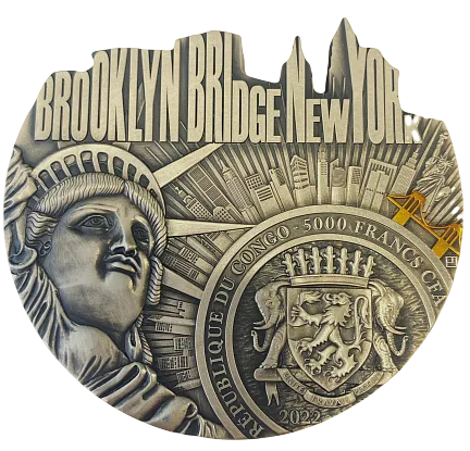 Монета «Бруклинский мост», 2022 г., Серебро, 155,5 гр., проба 999, КОНГО