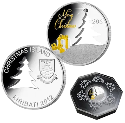 В 2012 году Остров Рождества (или Киритибати) выпустил впечатляющую серию «Рождественские монеты», которая определенно стала одним из ярких моментов нумизматики. Монеты отчеканены на монетном дворе Аляски, где ранее были выпущены рождественские медальоны для детей «Мастерская Санты».
